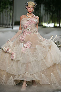 In celebration of Monsieur Dior's 100th birthday, John Galliano delivered the utmost in dedication and respect for the legendary designer in his visually-striking 2005 autumn/winter haute couture presentation. Commencing with a highly sensational production, which includes a horse-led carriage preceded by a simulated lightning storm, Galliano's collection oozed with turn-of-the-century fashions mixed with the vibrancy of South American exploration. With theatrics ranging from audio featuring lovely French monologues, accented with the romance of 40's jazz, to the charming little boy at the beginning representing a young Dior, Galliano's tribute presentation evoked an honor of the absolute highest order which proclaimed: